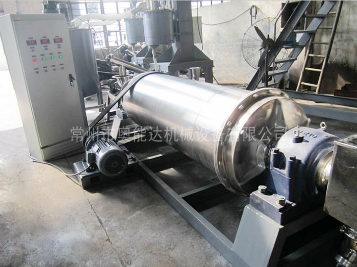 本機(jī)為臥式筒形旋轉(zhuǎn)裝置,外沿齒輪、鏈輪或皮帶傳動,兩倉格子型球麻機(jī)。